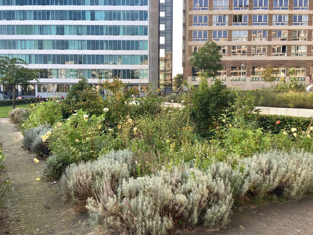 Dit zijn de negen Stadstuinperken op een rij.(Perk 1 ligt in het noorden, het dichtst bij het Bos en Lommerplein.)